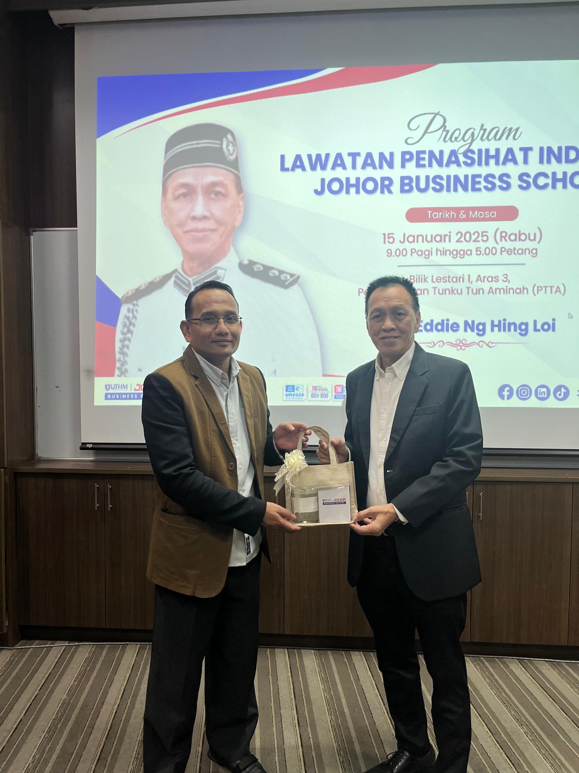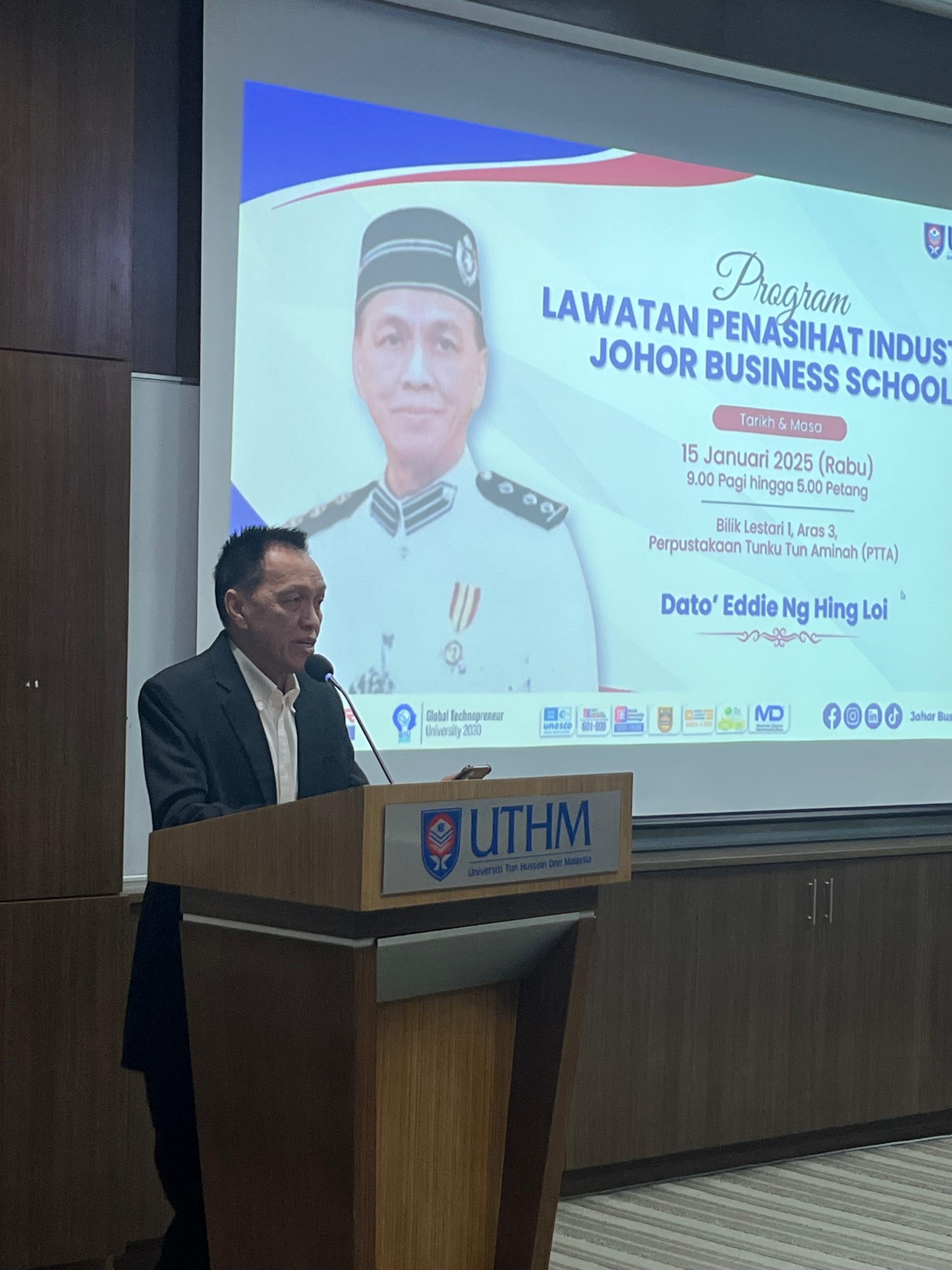 This meeting and discussion were held with YBhg. Dato' Eddie Ng Hing Loi, a prominent figure in the field of entrepreneurship. The program aimed to discuss ideas from the industry to determine the faculty's direction and ensure that academic and research programs remain relevant to current industry needs. This marks his first official working visit to Johor Business School, UTHM, as an industry advisor.